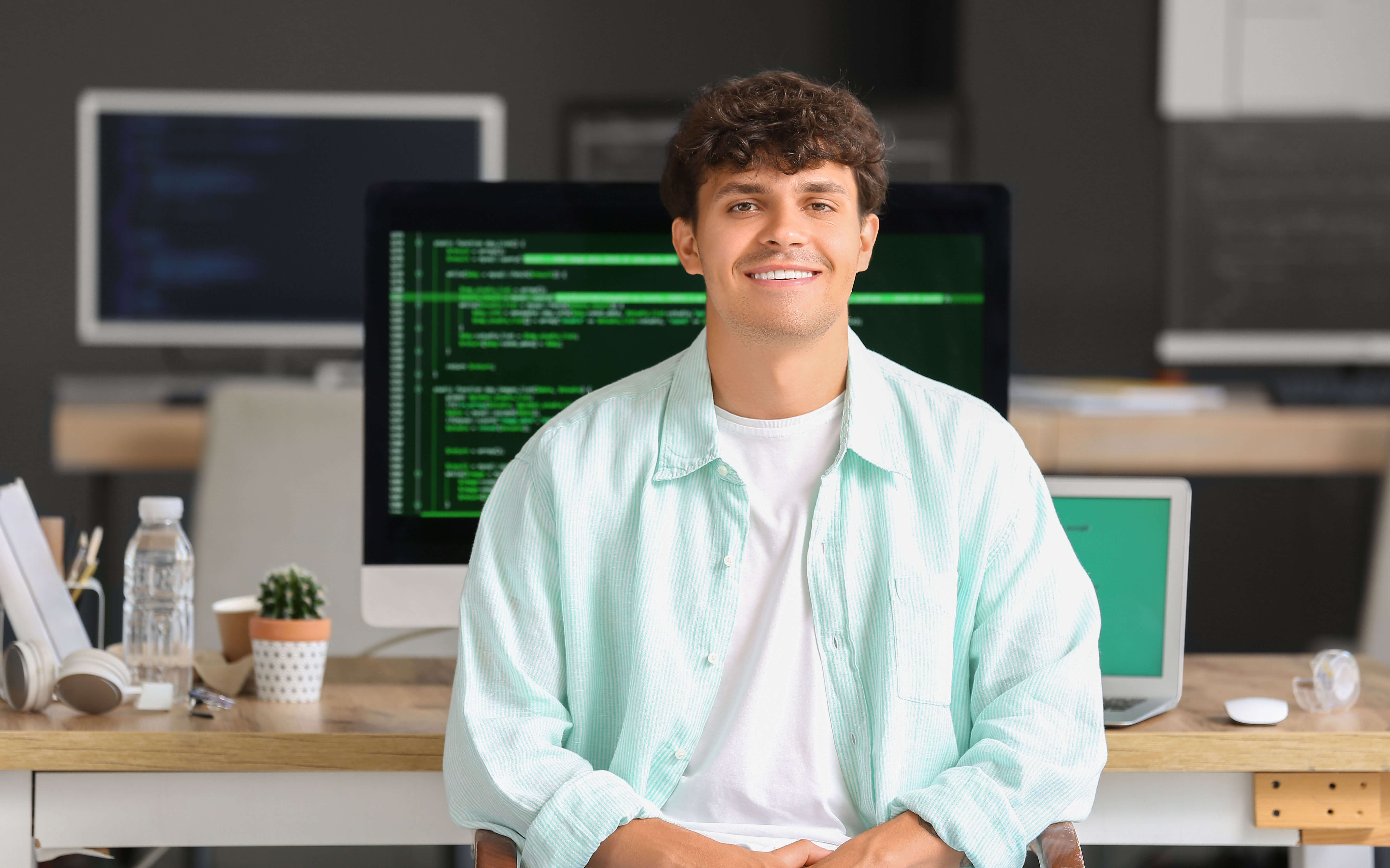 Male programmer sitting in office